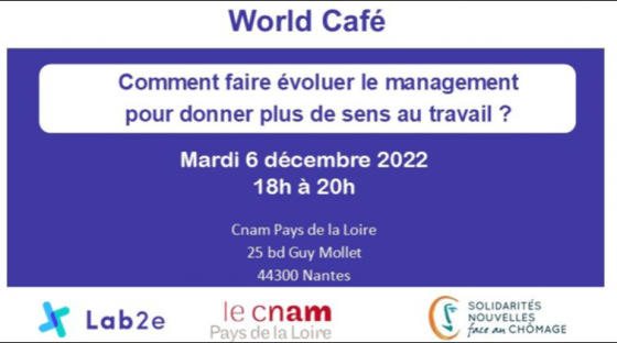 Solidarités Nouvelles face au Chômage et le Lab2e en partenariat avec le CNAM organise un temps de discussion et d'échanges autour de cette questionle mardi 6 décembre 18h à 20h au CNAM de Nantes